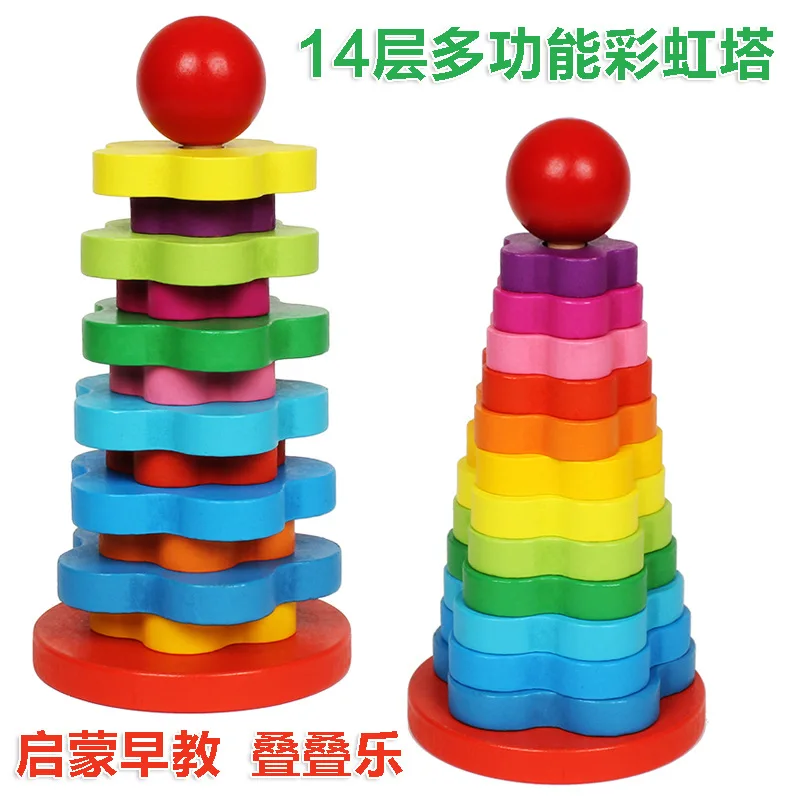 HIGH QUALITY 14-Layer Plum Tower Baby Toy 1-3 Years Old Educational Rainbow Tower Case Circle Intelligence Case