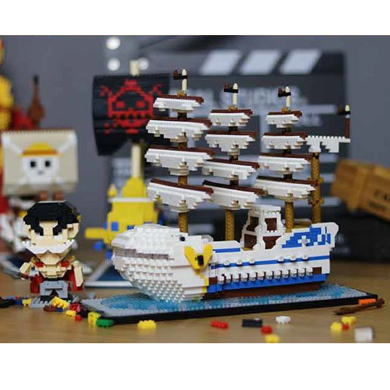 BEST HC 9034 Anime One Piece White Beard Pirate Ship Boat 3D Model DIY Mini Diamond Blocks Bricks Buildi