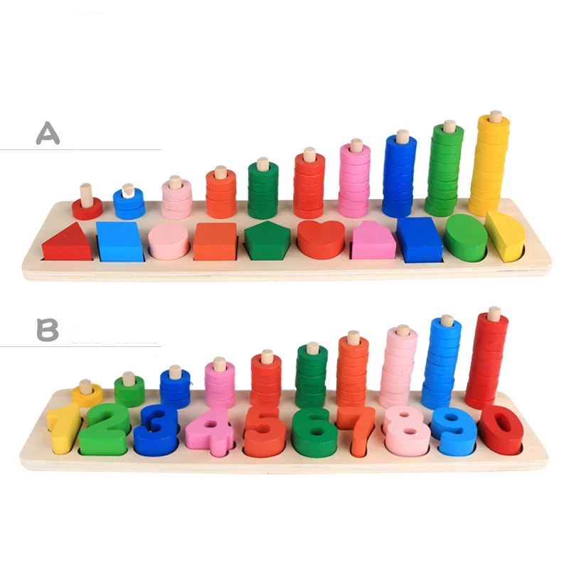 Preschool Wooden Montessori Toys Count Geometric Shape Cognition Match Baby Early Education Teachin