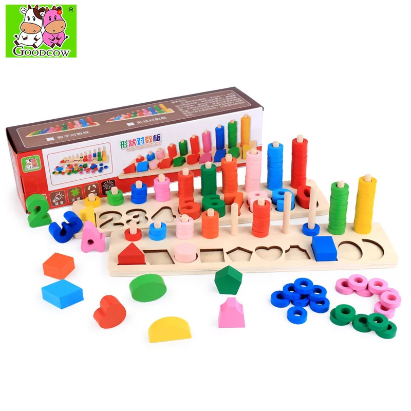 ORIGINAL Preschool Wooden Montessori Toys Count Geometric Shape Cognition Match Baby Early Education Teachin