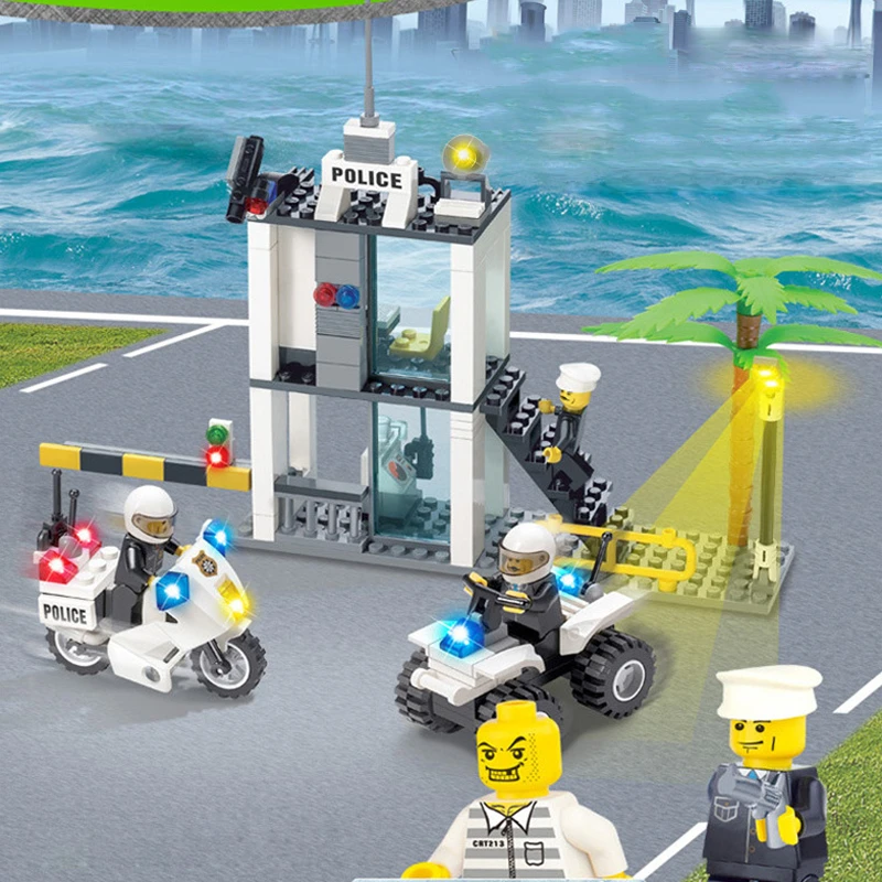 Police Public Security Post Police Office Series Beneficial Wisdom Assembling Toys Spelling Insert