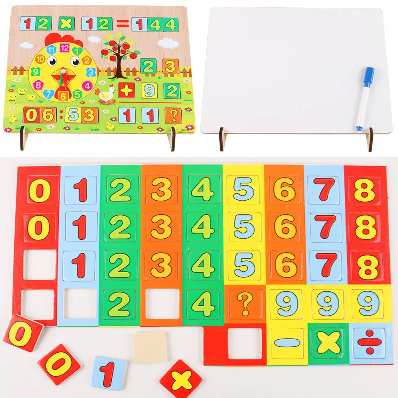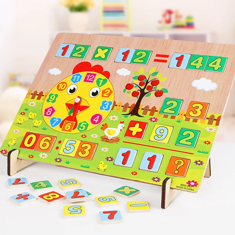 CHILDREN'S Toy Multi-functional Learning with Numbers Cartoon Clock Transport Calculation Frame Edu