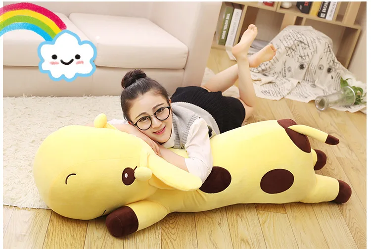 BEST QUALITY lovely cartooncolourful spots giraffe plush toy prone giraffe soft throw pillow Christmas gift w536