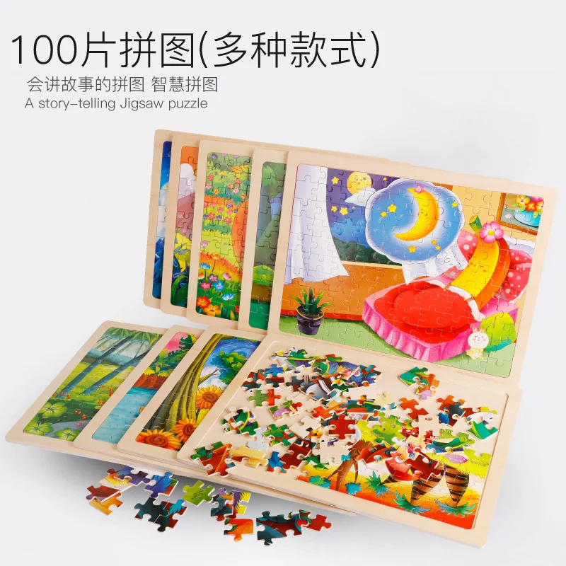 Wooden Puzzle CHILDREN'S Cartoon Animal Fruit Flat Jigsaw Puzzle 100 Pieces Early Childhood Educati