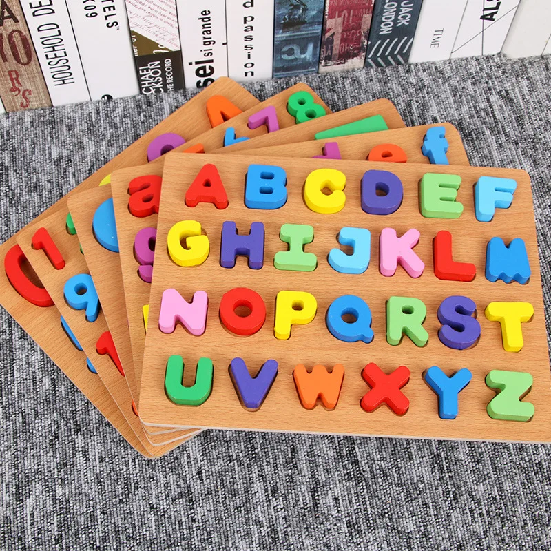 Best Seller Wooden Stereo Jigsaw Puzzle Clutch Plate with Numbers Lettered Shape Jigsaw Puzzle Early Childhood