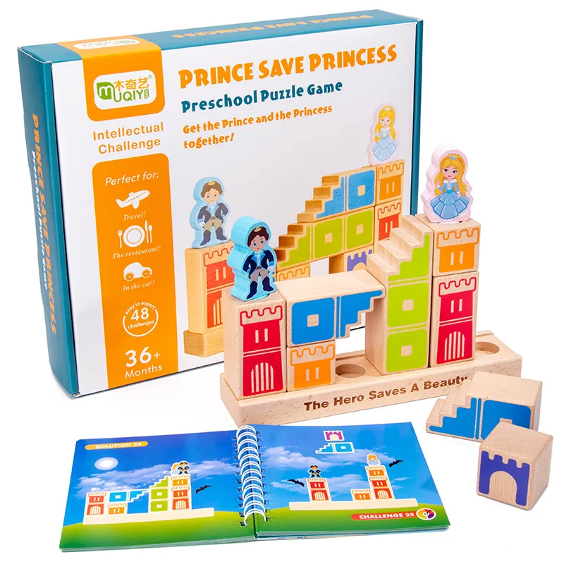 Montessori Camelot Jr Wooden Building Blocks Toy Prince Save The Princess Interactive Game for Kids